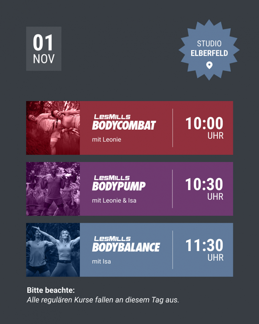 Unsere Feiertags-Specials am 1. November in Elberfeld, Lichtscheid und Vohwinkel sind für jede Stimmung gemacht. Einfach vorbeikommen und mitpowern.